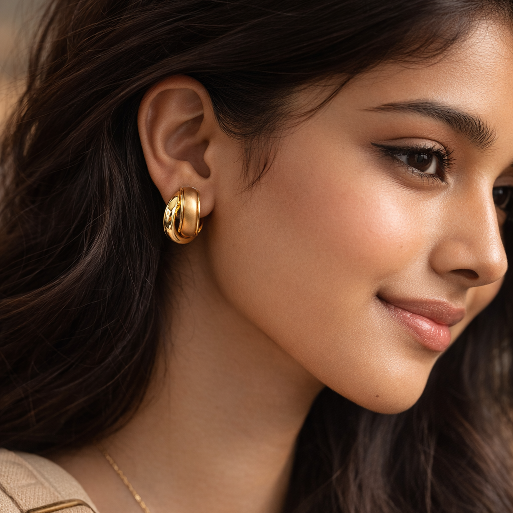 Built for the modern woman, these earrings are forged from premium stainless steel and finished with a durable gold plating. The anti-tarnish properties ensure they maintain their radiant glow through daily use, resisting the effects of moisture and oxidation. Whether you are dressing for a high-stakes boardroom meeting or a weekend brunch, these hoops provide a refined, upscale aesthetic.